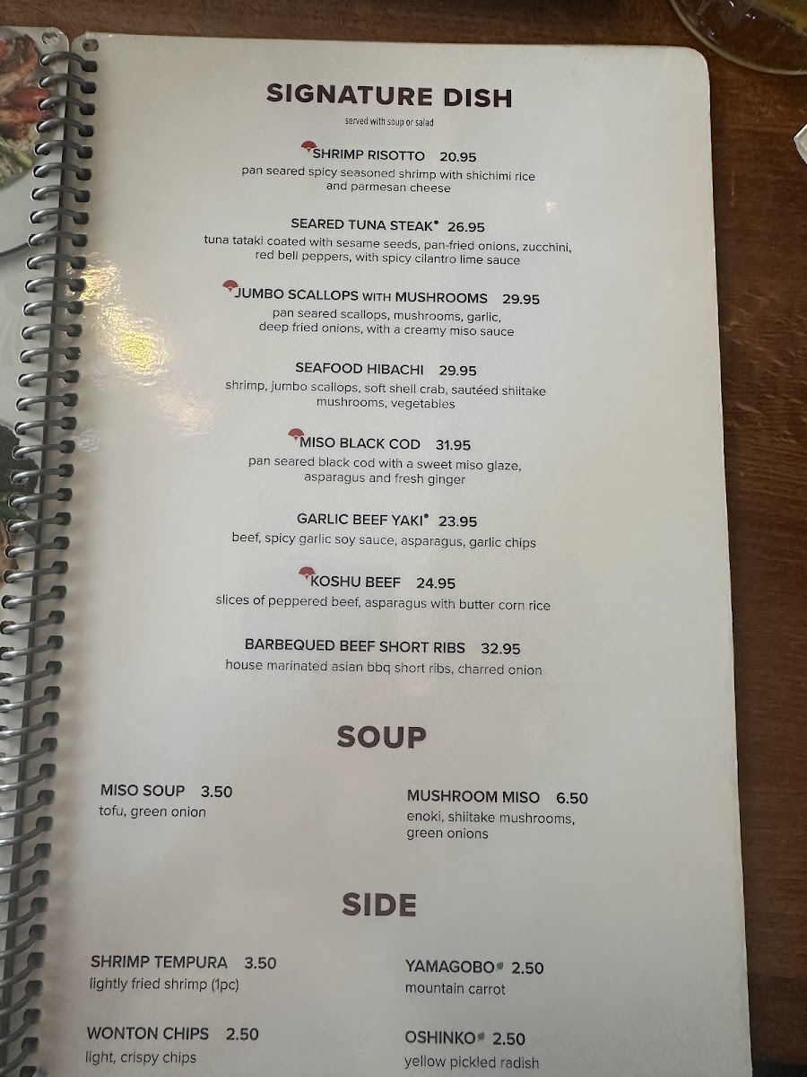 At Kabuki, every dish is crafted with precision and passion, delighting both the eyes and the palate. The menu features an array of enticing options, with standouts including the Seafood Hibachi. This signature dish comes sizzling to your table, showcasing an exquisite medley of shrimp, jumbo scallops, and soft shell crab, perfectly complemented by sautéed shiitake mushrooms and fresh vegetables, all for just US$35.12. Pair this with the Barbequed Beef Short Ribs—a house marinated delight that’s incredibly tender and bursting with flavor—for a truly indulgent experience, priced at US$39.40.